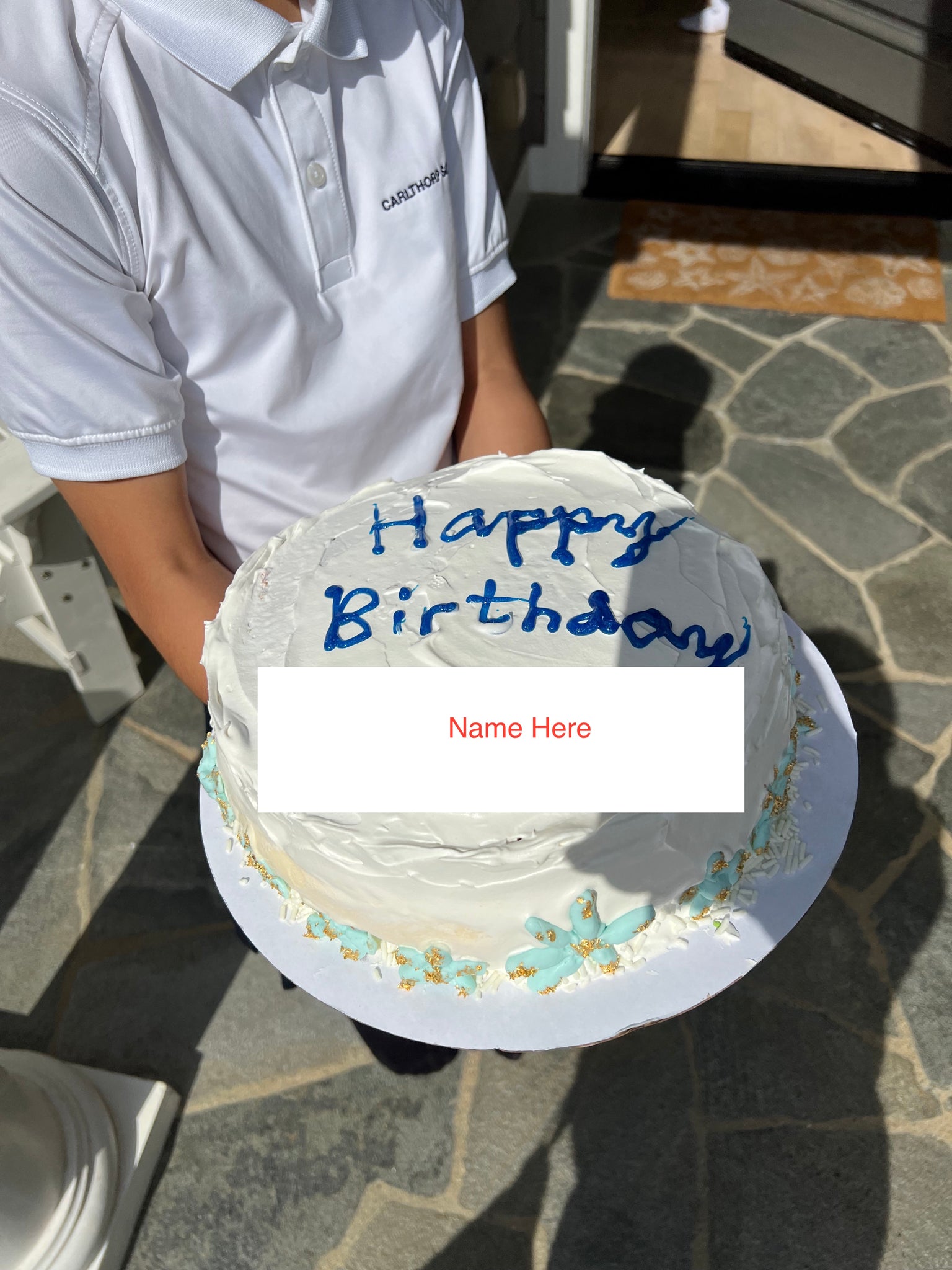 This is a birthday cake ice cream cake. It has to layers of cake and a layer of ice cream(vanilla). This cake has baby blue fondant roses with gold leafs on the rims. And lastly it has white sprinkles on the bottom on top of cool whip. A birthday smash!