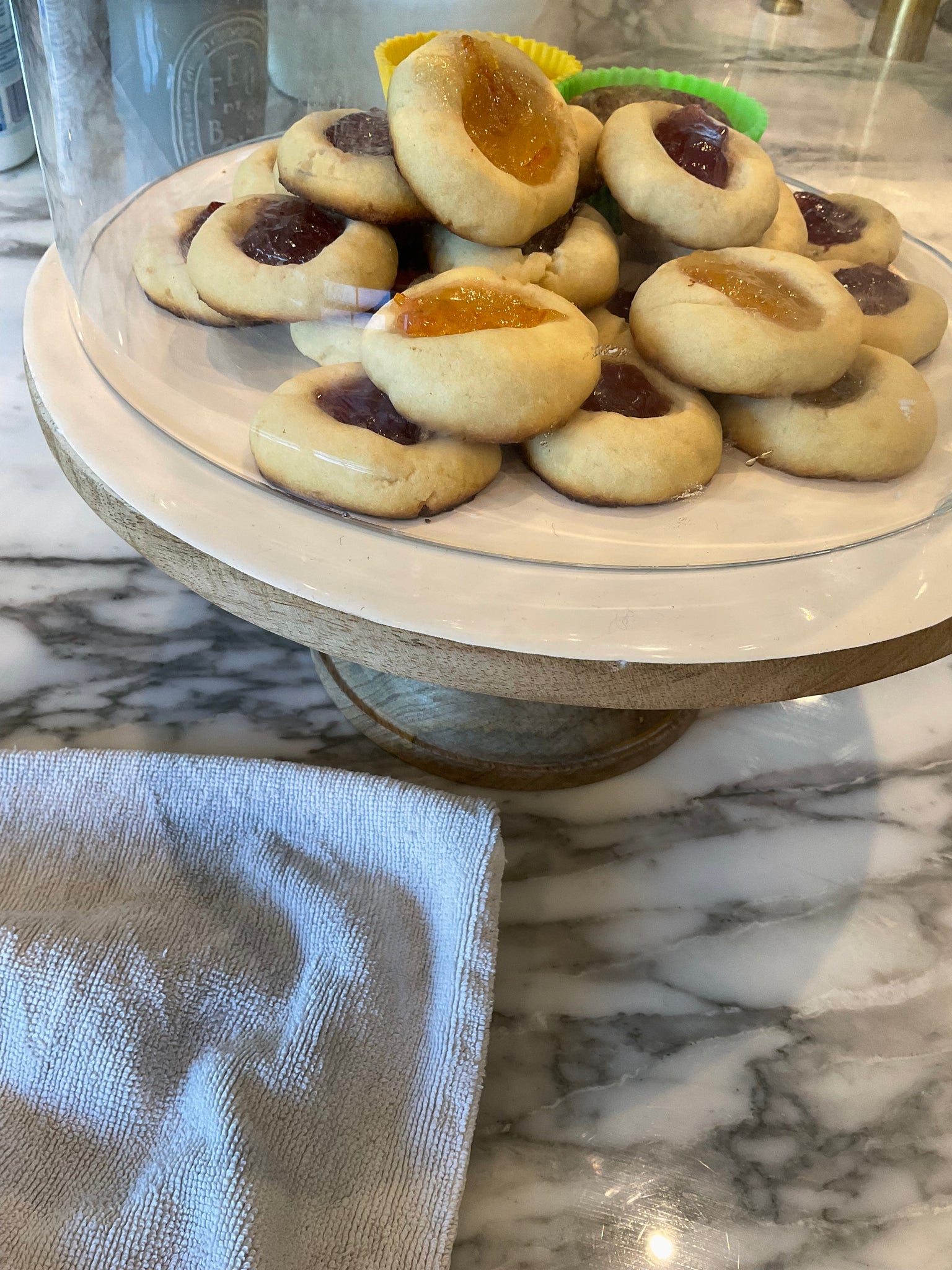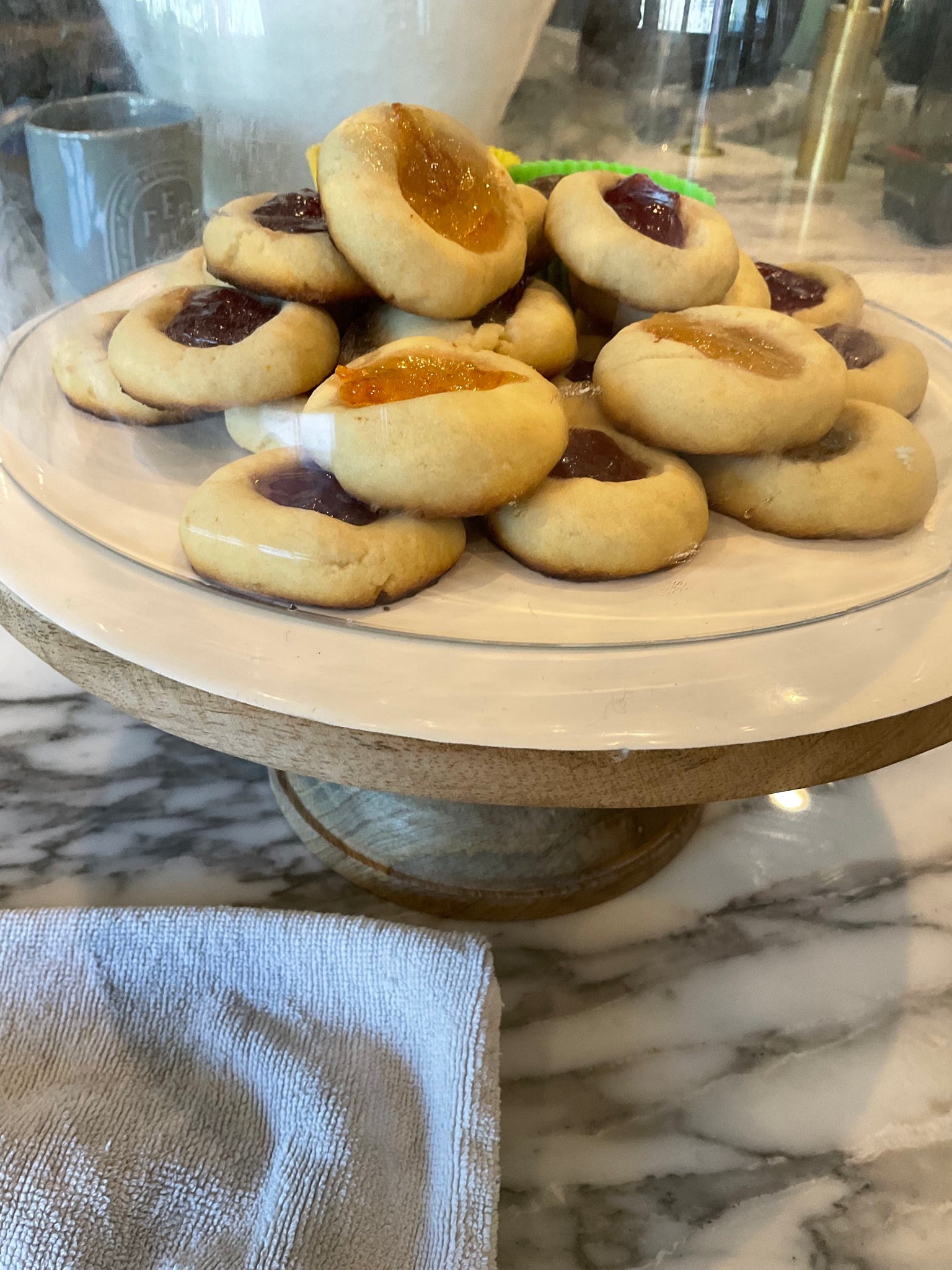 This item is a sugar cookie like with different jams, including grape, orange, and strawberry.